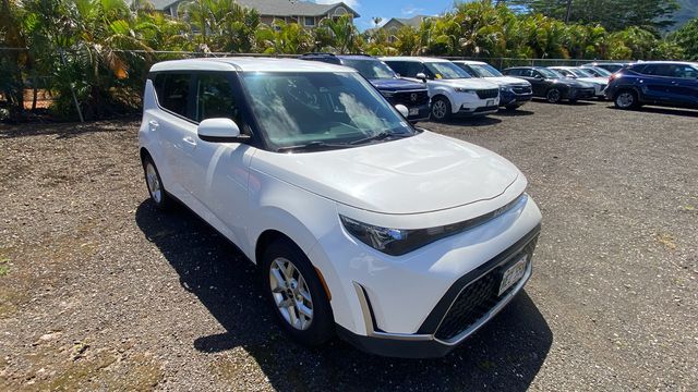 Certified. Snow White Pearl 2023 Kia Soul LX FWD CVT 16" Alloy Wheels, 16" Steel Wheels, 4-Wheel Disc Brakes, 6 Speakers, ABS brakes, Air Conditioning, AM/FM radio, Apple CarPlay & Android Auto, Auto High-beam Headlights, Blind-Spot Collision-Avoidance Assist, Brake assist, Bumpers: body-color, Carpeted Floor Mats, Compass, Delay-off headlights, Driver door bin, Driver vanity mirror, Dual front impact airbags, Dual front side impact airbags, Electronic Stability Control, Exterior Parking Camera Rear, Front anti-roll bar, Front Bucket Seats, Front Center Armrest, Front reading lights, Front wheel independent suspension, Fully automatic headlights, Illuminated entry, Lane Change Assist, Low tire pressure warning, LX Technology Package, Occupant sensing airbag, Outside temperature display, Overhead airbag, Overhead console, Panic alarm, Passenger door bin, Passenger vanity mirror, Power door mirrors, Power steering, Power windows, Radio data system, Radio: AM/FM/MP3/HD Audio System, Rear Cross-Traffic Collision Avoidance Assist, Rear window defroster, Rear window wiper, Remote keyless entry, Speed control, Speed-sensing steering, Split folding rear seat, Steering wheel mounted audio controls, Tachometer, Telescoping steering wheel, Tilt steering wheel, Traction control, Trip computer, Variably intermittent wipers, Woven & Tricot Cloth Seat Trim. 2.0L I4 DOHC