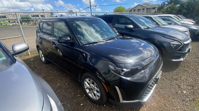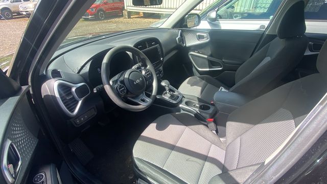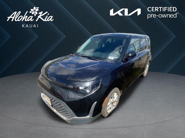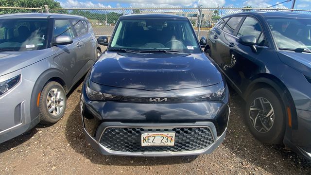 Certified. Fusion Black 2023 Kia Soul LX FWD CVT 16" Alloy Wheels, 16" Steel Wheels, 4-Wheel Disc Brakes, 6 Speakers, ABS brakes, Air Conditioning, AM/FM radio, Apple CarPlay & Android Auto, Auto High-beam Headlights, Blind-Spot Collision-Avoidance Assist, Brake assist, Bumpers: body-color, Carpeted Floor Mats, Compass, Delay-off headlights, Driver door bin, Driver vanity mirror, Dual front impact airbags, Dual front side impact airbags, Electronic Stability Control, Exterior Parking Camera Rear, Front anti-roll bar, Front Bucket Seats, Front Center Armrest, Front reading lights, Front wheel independent suspension, Fully automatic headlights, Illuminated entry, Lane Change Assist, Low tire pressure warning, LX Technology Package, Occupant sensing airbag, Outside temperature display, Overhead airbag, Overhead console, Panic alarm, Passenger door bin, Passenger vanity mirror, Power door mirrors, Power steering, Power windows, Radio data system, Radio: AM/FM/MP3/HD Audio System, Rear Cross-Traffic Collision Avoidance Assist, Rear window defroster, Rear window wiper, Remote keyless entry, Speed control, Speed-sensing steering, Split folding rear seat, Steering wheel mounted audio controls, Tachometer, Telescoping steering wheel, Tilt steering wheel, Traction control, Trip computer, Variably intermittent wipers, Woven & Tricot Cloth Seat Trim. 2.0L I4 DOHC