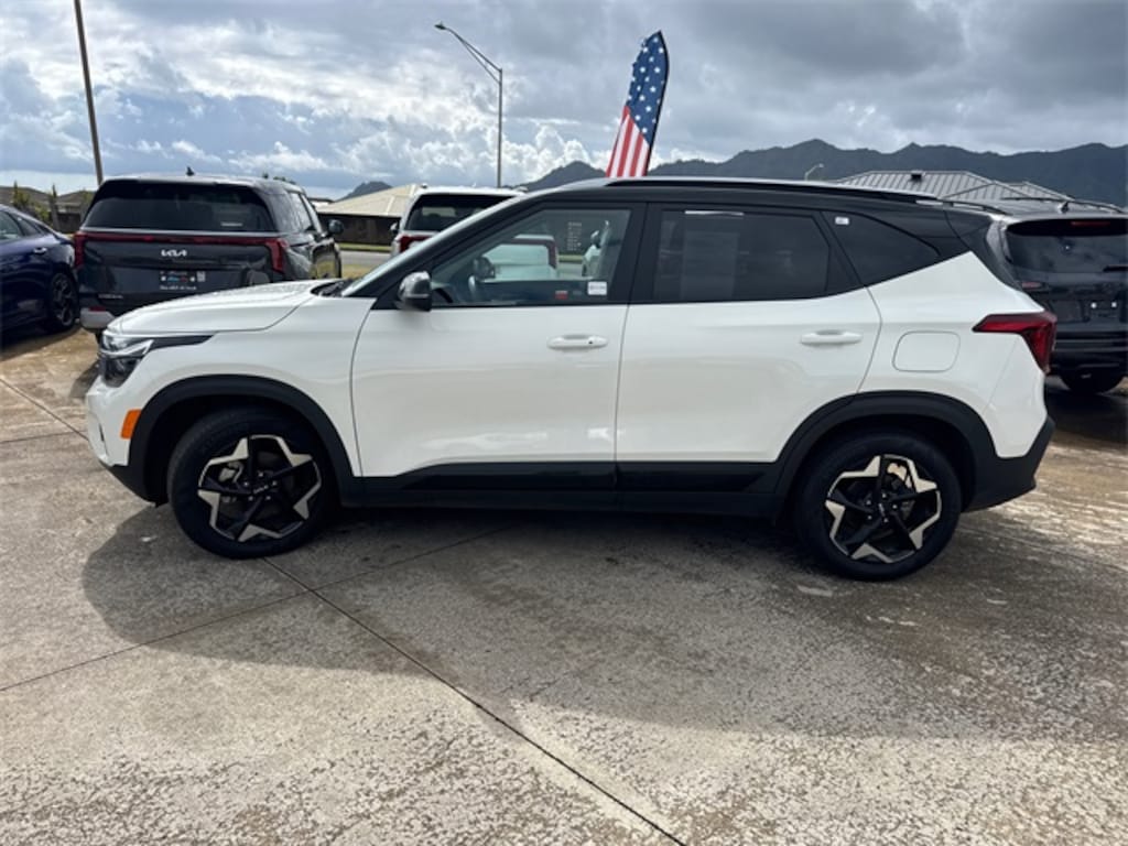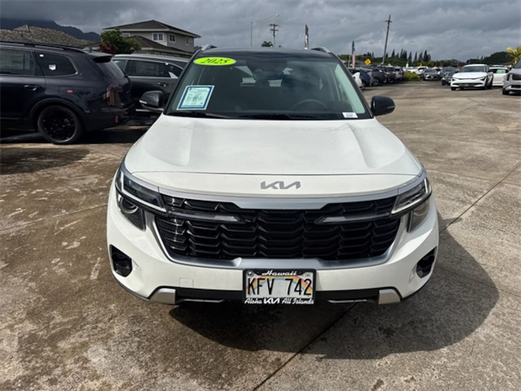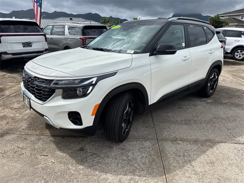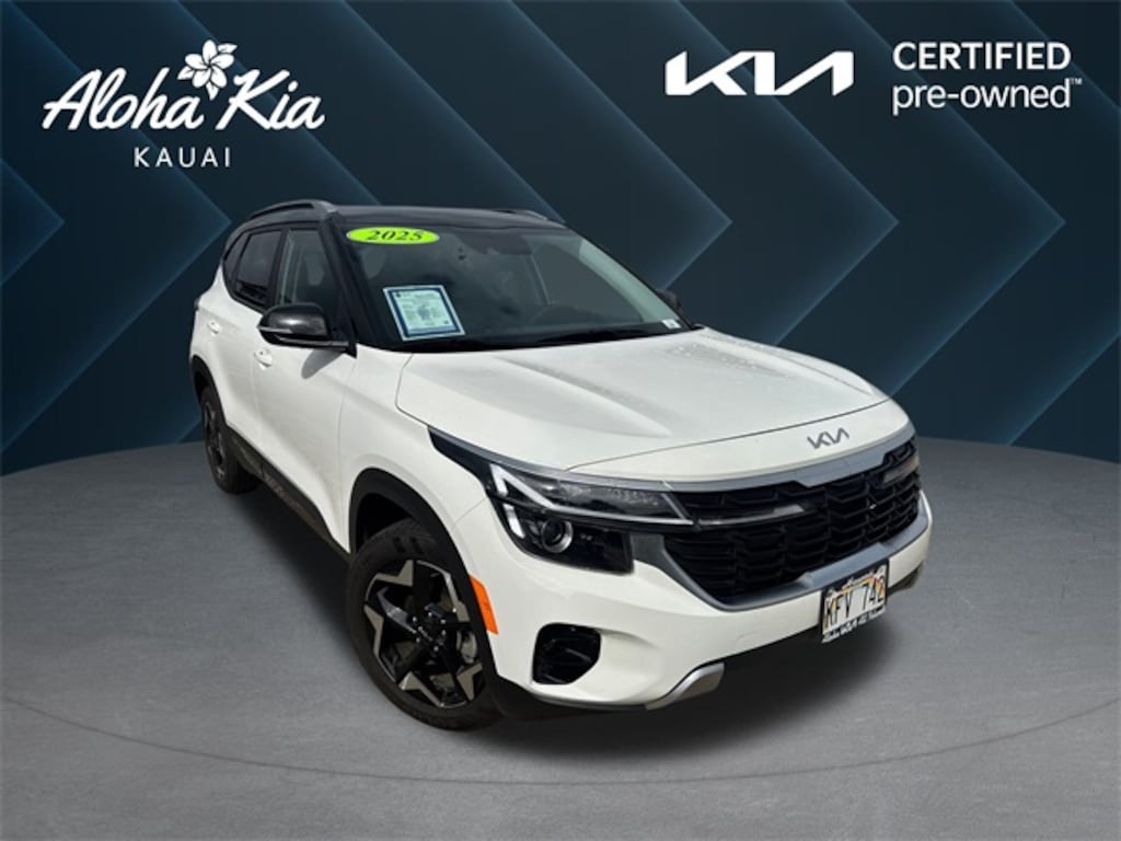 Certified. Clear White/Black Roof 2025 Kia Seltos S FWD CVT 4-Wheel Disc Brakes, 6 Speakers, ABS brakes, Air Conditioning, Alloy wheels, AM/FM radio: SiriusXM, Apple CarPlay & Android Auto, Auto High-beam Headlights, Automatic temperature control, Brake assist, Bumpers: body-color, Carpet Floor Mats, Cloth & Artificial Leather Seat Trim, Delay-off headlights, Driver door bin, Driver vanity mirror, Dual front impact airbags, Dual front side impact airbags, Electronic Stability Control, Emergency communication system: 911 Connect, Exterior Parking Camera Rear, Front anti-roll bar, Front Bucket Seats, Front Center Armrest, Front fog lights, Front reading lights, Front wheel independent suspension, Fully automatic headlights, Glossy Black Door Garnish, Glossy Black Door Garnish Package, Heated door mirrors, Illuminated entry, Leather Shift Knob, Leather steering wheel, Low tire pressure warning, Navigation System, Occupant sensing airbag, Outside temperature display, Overhead airbag, Overhead console, Panic alarm, Passenger door bin, Passenger vanity mirror, Power door mirrors, Power steering, Power windows, Radio: AM/FM/HD/Satellite Display System w/Navigation, Rear seat center armrest, Rear window defroster, Rear window wiper, Remote keyless entry, Security system, Speed control, Speed-sensing steering, Split folding rear seat, Spoiler, Steering wheel mounted audio controls, Tachometer, Telescoping steering wheel, Tilt steering wheel, Traction control, Trip computer, Turn signal indicator mirrors, Variably intermittent wipers, Wheels: 17" Alloy w/Machined Finished. 2.0L I4 MPI