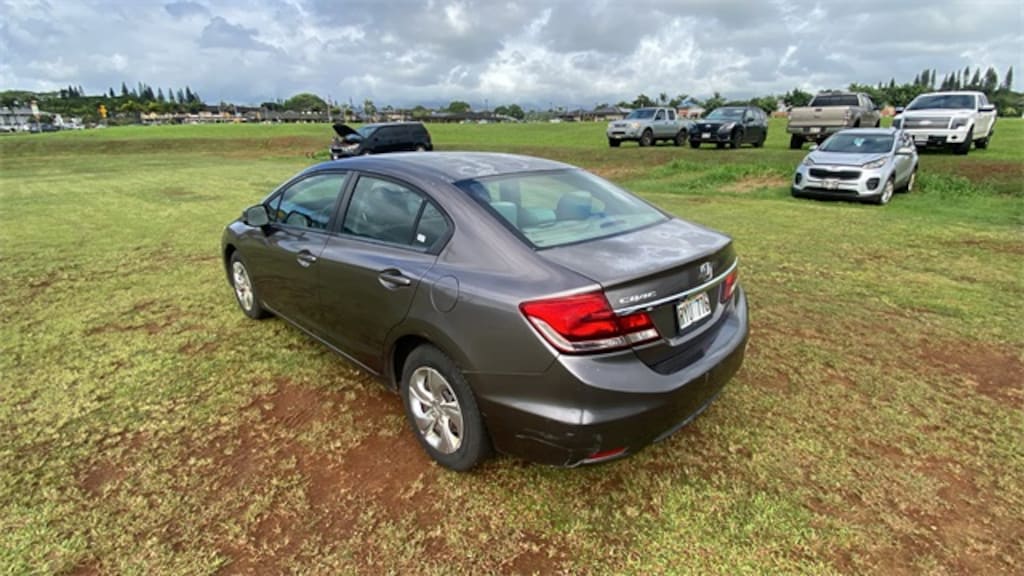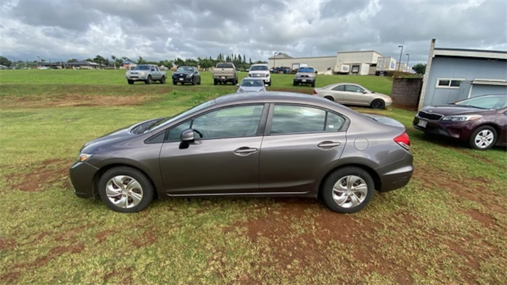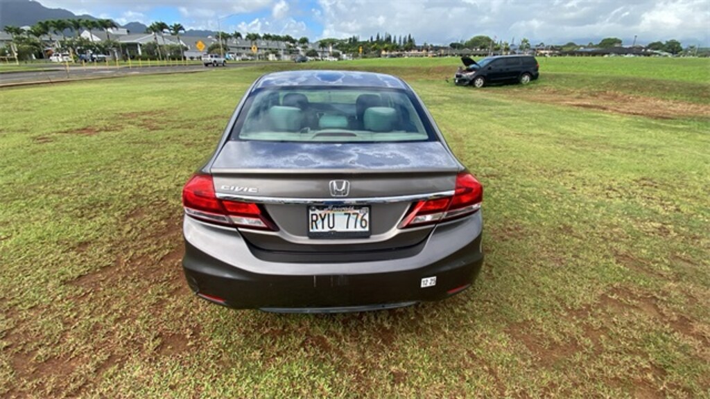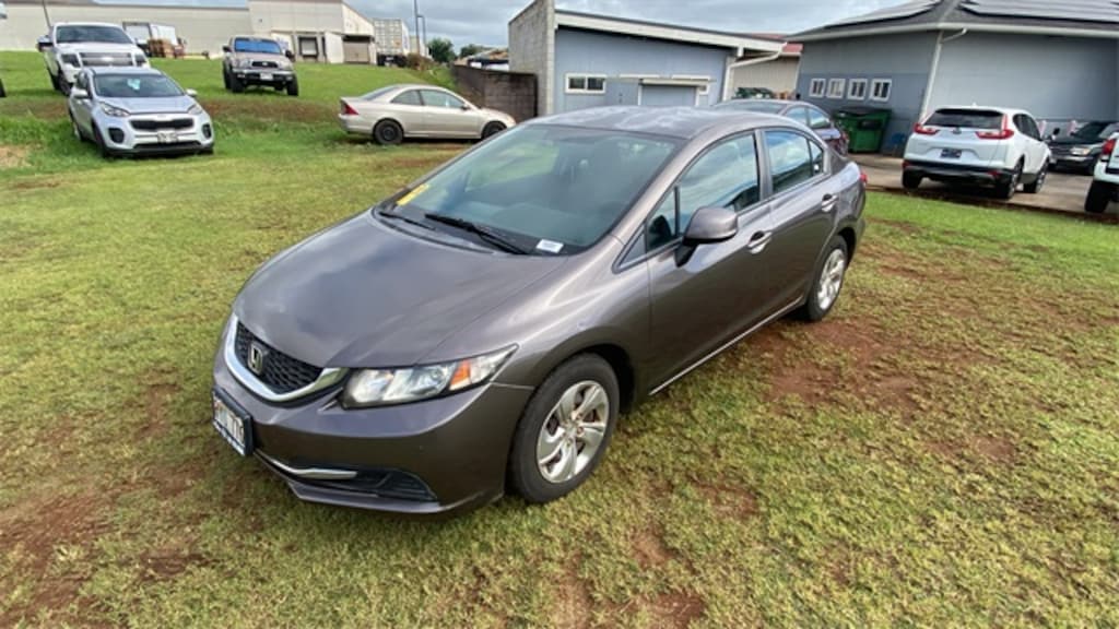 Brown 2013 Honda Civic LX FWD Compact 5-Speed Automatic 15" Wheels w/Full Covers, 160-Watt AM/FM/CD Audio System, 4 Speakers, ABS brakes, Air Conditioning, AM/FM radio, Brake assist, Bumpers: body-color, CD player, Cloth Seat Trim, Delay-off headlights, Driver door bin, Driver vanity mirror, Dual front impact airbags, Dual front side impact airbags, Electronic Stability Control, Exterior Parking Camera Rear, Four wheel independent suspension, Front anti-roll bar, Front Bucket Seats, Front Center Armrest, Front reading lights, Illuminated entry, Low tire pressure warning, Occupant sensing airbag, Outside temperature display, Overhead airbag, Panic alarm, Passenger door bin, Passenger vanity mirror, Power door mirrors, Power steering, Power windows, Radio data system, Rear anti-roll bar, Rear window defroster, Reclining Front Bucket Seats, Remote keyless entry, Security system, Speed control, Speed-sensing steering, Steering wheel mounted audio controls, Tachometer, Telescoping steering wheel, Tilt steering wheel, Traction control, Trip computer. 1.8L I4 SOHC 16V i-VTEC