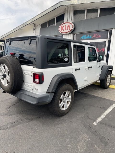 Bright White Clearcoat 2020 Jeep Wrangler Unlimited Sport S 4WD 8-Speed Automatic 2.0L I4 DOHC 3.45 Rear Axle Ratio, 4-Wheel Disc Brakes, 8 Speakers, ABS brakes, Air Conditioning, AM/FM radio, Automatic Headlamps, Aux Battery, Black 3-Piece Hard Top, Brake assist, Cloth Low-Back Bucket Seats, Compass, Deep Tint Sunscreen Windows, Delay-off headlights, Driver door bin, Driver vanity mirror, Dual front impact airbags, Dual front side impact airbags, Electronic Stability Control, Freedom Panel Storage Bag, Front 1-Touch Down Power Windows, Front anti-roll bar, Front Bucket Seats, Front Center Armrest w/Storage, Front fog lights, Front reading lights, Integrated roll-over protection, Integrated Voice Command w/Bluetooth, Leather Wrapped Steering Wheel, Low tire pressure warning, Manufacturer's Statement of Origin, No Soft Top, Non-Lock Fuel Cap w/o Discriminator, Normal Duty Suspension, Occupant sensing airbag, Outside temperature display, ParkView Rear Back-Up Camera, Passenger door bin, Passenger vanity mirror, Power Heated Mirrors, Power steering, Quick Order Package 22S Sport S, Radio data system, Radio: Uconnect 3 w/5" Display, Rear anti-roll bar, Rear reading lights, Rear Window Defroster, Rear Window Wiper/Washer, Remote Keyless Entry, Security Alarm, Speed control, Speed Sensitive Power Locks, Split folding rear seat, Steering wheel mounted audio controls, Stop-Start Dual Battery System, Sun Visors w/Illuminated Vanity Mirrors, Tachometer, Telescoping steering wheel, Tilt steering wheel, Traction control, Trip computer, Variably intermittent wipers, Wheels: 17" x 7.5" Black Steel Styled, Wheels: 17" x 7.5" Tech Silver Aluminum.