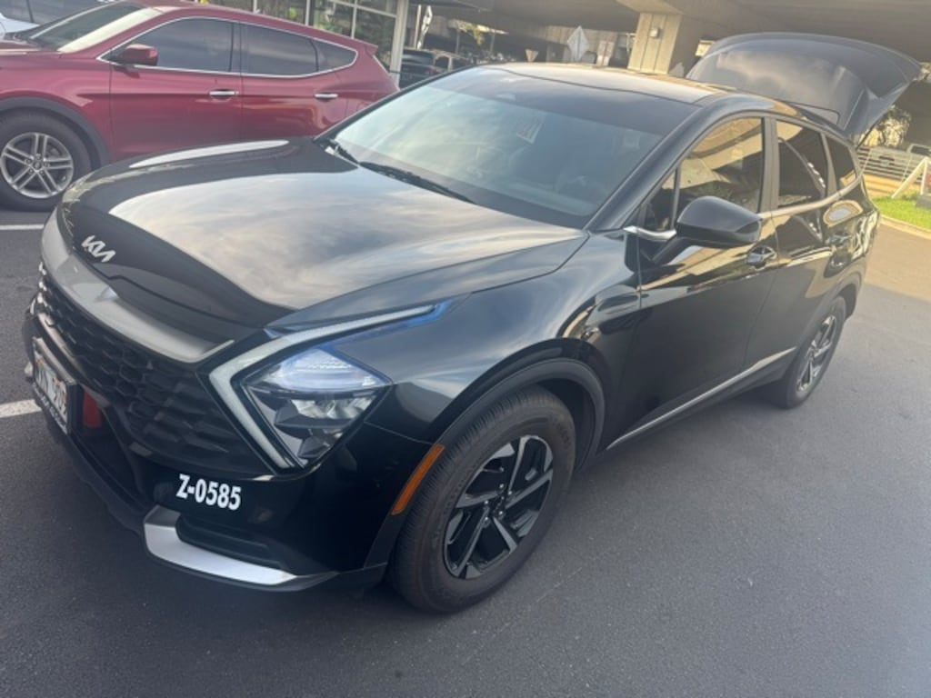 Fusion Black 2023 Kia Sportage Hybrid LX FWD 6-Speed Automatic 1.6L Turbo GDI 4-Cylinder 1.6L Turbo GDI 4-Cylinder, 4-Wheel Disc Brakes, 6 Speakers, ABS brakes, Air Conditioning, Alloy wheels, AM/FM radio, Auto High-beam Headlights, Automatic temperature control, Axle Ratio: 3.32, Brake assist, Bumpers: body-color, Carpet Floor Mats, Cloth Seat Trim, Delay-off headlights, Driver door bin, Driver vanity mirror, Dual front impact airbags, Dual front side impact airbags, Electronic Stability Control, Four wheel independent suspension, Front anti-roll bar, Front Bucket Seats, Front Center Armrest, Front dual zone A/C, Fully automatic headlights, Illuminated entry, Low tire pressure warning, Occupant sensing airbag, Outside temperature display, Overhead airbag, Overhead console, Panic alarm, Passenger door bin, Passenger vanity mirror, Power door mirrors, Power steering, Power windows, Radio: AM/FM/HD Audio System, Rain sensing wipers, Rear anti-roll bar, Rear seat center armrest, Rear window defroster, Rear window wiper, Remote keyless entry, Security system, Speed control, Speed-sensing steering, Split folding rear seat, Spoiler, Steering wheel mounted audio controls, Tachometer, Telescoping steering wheel, Tilt steering wheel, Traction control, Trip computer, Variably intermittent wipers, Wheel Locks, Wheels: 17" x 7J Areo Alloy, Backup Camera / Reverse Camera / Rear View Camera, 1.6L Turbo GDI 4-Cylinder.
