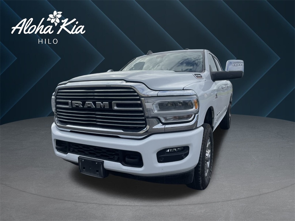 Certified. Bright White Clearcoat 2024 Ram 2500 Laramie 4WD 6-Speed Automatic Cummins 6.7L I6 Turbodiesel Traditional Certified, 10 Speakers, 115V Auxiliary Rear Power Outlet, 12" Touchscreen Display, 2 Way Rear Headrest Seat, 220 Amp Alternator, 2nd Row In Floor Storage Bins, 3.73 Axle Ratio, 4 Way Front Headrests, 4-Wheel Disc Brakes, 4G LTE Wi-Fi Hot Spot, ABS brakes, Active Noise Control System, Air Conditioning, Alexa Built-In, Alloy wheels, AM/FM radio: SiriusXM with 360L, Apple CarPlay, Apple CarPlay/Android Auto, Auto Adjust In Reverse Exterior Mirrors, Auto Dim Exterior Mirror, Auto High Beam Headlamp Control, Auto Power-Folding Mirrors, Auto-Dimming Exterior Passenger Mirror, Automatic temperature control, Blind Spot & Cross Path Detection, Brake assist, Bumpers: body-color, Center Hub, Chrome Exterior Mirrors, Compass, Connected Travel & Traffic Services, Connectivity - US/Canada, Delay-off headlights, Disassociated Touchscreen Display, Driver door bin, Driver vanity mirror, Dual front impact airbags, Dual front side impact airbags, Electronic Stability Control, Electronically Controlled Throttle, Exterior Mirrors Courtesy Lamps, Exterior Mirrors w/Heating Element, Exterior Mirrors w/Memory, Exterior Mirrors w/Supplemental Signals, Foam Bottle Insert (Door Trim Panel), For Details, Visit DriveUconnect.com, For More Info, Call 800-643-2112, Forward & Reverse Utility Lights, Front anti-roll bar, Front Center Armrest w/Storage, Front dual zone A/C, Front LED Fog Lamps, Front License Plate Bracket, Front reading lights, Front Seat Back Map Pockets, Fully automatic headlights, Garage door transmitter, Global Telematics Box Module (TBM), Google Android Auto, GPS Antenna Input, GPS Navigation, HD Radio, Heated door mirrors, Heated Front Seats, Heated front seats, Heated Steering Wheel, Heated steering wheel, Illuminated entry, Integrated Voice Command w/Bluetooth, Laramie Level 1 Equipment Group, Leather steering wheel, Leather Trim 40/20/40 Bench Seat, LED Reflector Headlamps, LED Tail Lamps, Low tire pressure warning, Manufacturer's Statement of Origin, Mirror Running Lights, Navigation System, Occupant sensing airbag, Off-Road Information Pages, Outside temperature display, Overhead airbag, Overhead console, Panic alarm, ParkSense Front/Rear Park Assist System, ParkView Rear Back-Up Camera, Passenger door bin, Passenger vanity mirror, Power 2-Way Driver Lumbar Adjust, Power 2-Way Passenger Lumbar Adjust, Power Adjust 8-Way Driver Seat, Power Adjust 8-Way Front Passenger Seat, Power Adjust Mirrors, Power Adjustable Convex Aux Mirrors, Power Adjustable Pedals w/Memory, Power door mirrors, Power driver seat, Power Heated Fold Telescopic Mirrors w/Memory, Power passenger seat, Power steering, Power Telescoping Mirrors, Power windows, Quick Order Package 2HH Laramie, Radio data system, Radio: Uconnect 5 Nav w/12.0" Display, Rain Sensitive Windshield Wipers, Rear 60/40 Folding Seat, Rear anti-roll bar, Rear Power Sliding Window, Rear reading lights, Rear seat center armrest, Rear step bumper, Rear Window Defroster, Rear window defroster, Remote keyless entry, Remote Tailgate Release, Security system, Selectable Tire Fill Alert, SiriusXM Radio Service, SiriusXM w/360L, Speed control, Split folding rear seat, Steering wheel mounted audio controls, Tachometer, Tilt steering wheel, Tip Start, Tow Hooks, Traction control, Trailer Tow Pages, Trip computer, Turn signal indicator mirrors, Variably intermittent wipers, Voltmeter, Wheels: 18" x 8.0" Polished Aluminum.