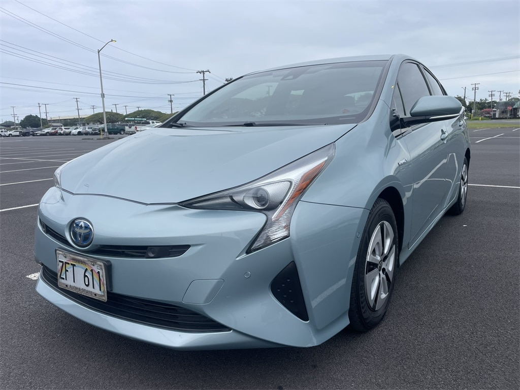 Blue 2018 Toyota Prius Four FWD CVT 1.8L 4-Cylinder DOHC 16V VVT-i 1.8L 4-Cylinder DOHC 16V VVT-i, 4-Wheel Disc Brakes, 6 Speakers, ABS brakes, Air Conditioning, Alloy wheels, AM/FM radio: SiriusXM, Auto High-beam Headlights, Auto-dimming Rear-View mirror, Automatic temperature control, Brake assist, Bumpers: body-color, Delay-off headlights, Driver door bin, Driver vanity mirror, Dual front impact airbags, Dual front side impact airbags, Electronic Stability Control, Exterior Parking Camera Rear, Four wheel independent suspension, Front anti-roll bar, Front Bucket Seats, Front Center Armrest, Front reading lights, Fully automatic headlights, Garage door transmitter: HomeLink, Garage Opener, Heated door mirrors, Heated Front Bucket Seats, Heated front seats, Illuminated entry, Intelligent Clearance Sonar (ICS), Knee airbag, Lane Change Assist, Low tire pressure warning, Navigation System, Occupant sensing airbag, Outside temperature display, Overhead airbag, Overhead console, Panic alarm, Passenger door bin, Passenger vanity mirror, Power door mirrors, Power driver seat, Power steering, Power windows, Radio: Entune Premium Audio w/Navigation/App Suite, Rain sensing wipers, Rear anti-roll bar, Rear seat center armrest, Rear window defroster, Rear window wiper, Remote keyless entry, SofTex Seat Trim, Speed control, Split folding rear seat, Steering wheel mounted audio controls, Telescoping steering wheel, Tilt steering wheel, Traction control, Trip computer, Variably intermittent wipers, Wheels: 6.5J x 15" 5-Spoke Aluminum Alloy, 1.8L 4-Cylinder DOHC 16V VVT-i.